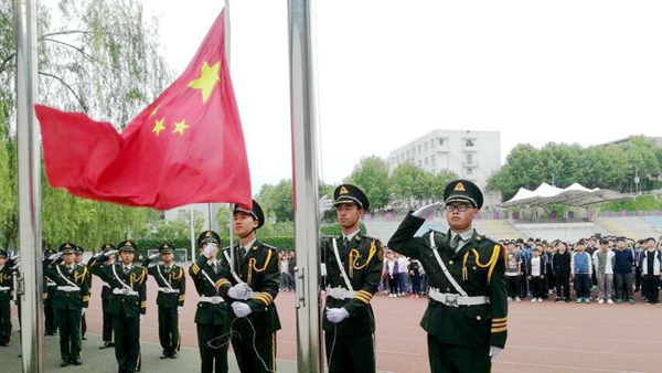 在雄壯的國歌聲中,鮮艷的五星紅旗冉冉升起,迎風飄揚。在場每一個人都在心中默默祝福祖國不斷強大富強,早日實現中華民族偉大復興的“中國夢”。在國歌聲響起時,景觀平臺和操場上的行人也都自覺停下了腳步,向國旗行注目禮。