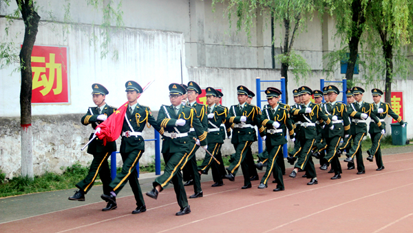 迎著晨曦,化材學院國旗護衛隊邁著整齊的步伐,高喊嘹亮的口號,向國旗臺走來。他們身姿挺拔,眼神堅毅,每一個動作都彰顯著新時代青年學子的愛國風采。