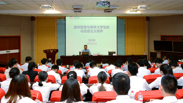 講座伊始,龍治剛從推動人類社會發展的重大事件及人類歷史文明的演變為切入點,引導學生們深入理解人類命運共同體的歷史淵源。隨后,他圍繞“何為國學”“中國傳統思想文化里的國學智慧”“用國學智慧提升青年大學生的馬克思主義修養”三個方面進行詳細的講解。