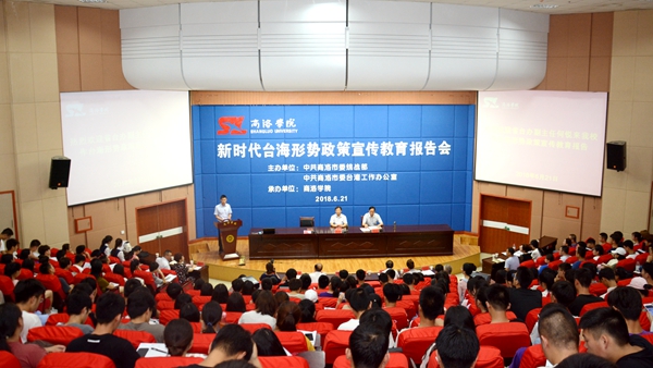 劉勇在歡迎詞中指出,本次報告會在我校舉辦,是我們了解最新臺海形勢的一次機會,有利于我們深入學習貫徹黨的十九大精神和習近平總書記對臺工作重要思想,認真貫徹落實省、市對臺工作會議精神,促進國(境)外合作交流工作再上新臺階。