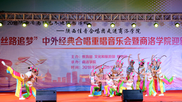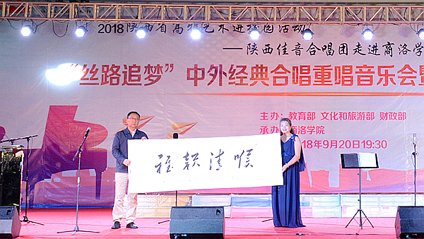 9月20日晚,由教育部、文化和旅游部、財政部主辦的2018年“高雅藝術進校園”活動——陜西佳音合唱團“絲路追夢”中外經典合唱重唱專場音樂會暨我校迎新晚會在體育場隆重舉辦。黨委書記龍治剛,校長范新會,黨委副書記彭虎軍,陜西佳音合唱團團長、指揮西安電子科技大學周偉教授,合唱團藝術總監西安交通大學馬西平教授,合唱團導聆西安音樂學院藝術處處長劉寶玲出席活動。