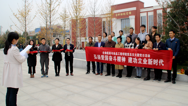 生物醫(yī)藥與食品工程學院教工黨員及部分黨外人員代表前往富平縣愛國主義教育示范基地開展主題黨日活動。在習仲勛陵園和習仲勛同志生平事跡展館,參加活動的全體同志一起緬懷革命先輩,追憶老一輩無產(chǎn)階級革命家光輝的革命歷程,了解習仲勛同志為新中國的建立、建設(shè)和改革開放事業(yè)嘔心瀝血的歷史事跡和他在工作中始終堅持實事求是、心系群眾的優(yōu)良作風。在習仲勛紀念館前,黨員們面對黨旗,重溫入黨誓詞,黨員代表深情朗誦《可愛的祖國》,以習仲勛同志“戰(zhàn)斗一生,快樂一生;天天奮斗,天天快樂”的話語為勉勵,真正做到立足崗位做貢獻。