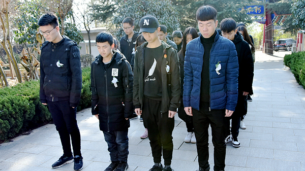 在莘子苑,學(xué)生會、新青年通訊社的學(xué)子們伴隨著雄壯的國歌聲,全體齊唱中華人民共和國國歌,并集體默哀一分鐘,哀悼罹難的同胞。學(xué)生代表郝志杰作主題發(fā)言。他說,作為當(dāng)代大學(xué)生,應(yīng)學(xué)習(xí)歷史,反思?xì)v史,牢記歷史,勿忘國恥,決不能忘卻歷史,忘卻苦難,還要立志成才,學(xué)好扎實本領(lǐng),自覺把個人的理想追求融入國家和民族的事業(yè)中,做社會主義建設(shè)者和接班人。隨后,參加活動的全體人員還一起閱讀愛國書籍,從書中回顧民族歷史,增強愛國熱情,并紛紛在“銘記歷史 勿忘國恥”的橫幅上簽字表態(tài),表明他們不忘歷史、愛國奮進(jìn)的堅定決心。