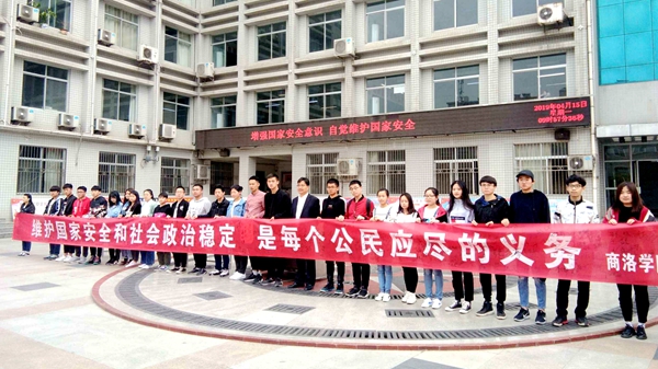 本次“全民國家安全教育日”宣傳活動由我校和商洛市國家安全局聯合舉辦,活動現場共懸掛橫幅5條,張貼海報25張,擺放展板11張,散發宣傳材料3000余份,贈送印有國家安全知識的筆筒、手提袋、扇子等禮品1000多件。活動期間,還通過召開主題班會,QQ群、微信群推送國家安全知識,LED電子熒屏滾動播放國家安全標語等多種形式營造了濃厚的活動氛圍、宣傳了國家安全知識。