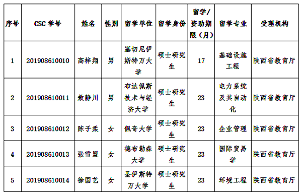 2019年度匈牙利互換獎學金錄取名單(第一批)