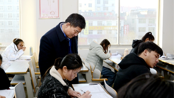 本學(xué)期期末考試于2019年12月30日至2020年1月10日進(jìn)行,開(kāi)考首日,校領(lǐng)導(dǎo)龍治剛、范新會(huì)、彭虎軍、劉寶盈、劉勇、王新軍在教務(wù)處和相關(guān)院部負(fù)責(zé)人的陪同下,分頭深入考場(chǎng),檢查指導(dǎo)期末考試工作。