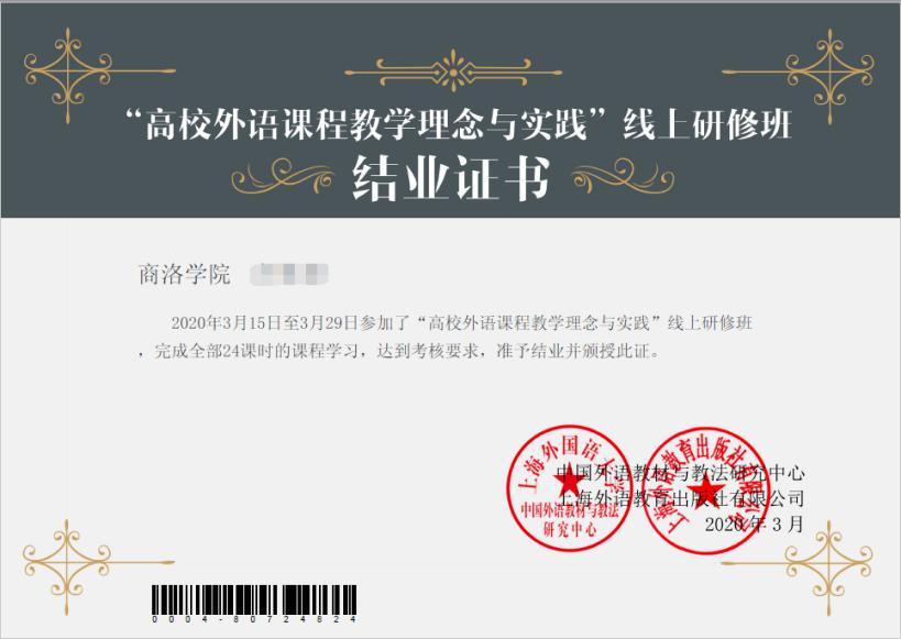 ——教學水平穩步提升。提升教學基本功是教研室活動的主要內容。為了最大限度降低疫情對教研活動的影響,人文學院組織教師參加了測試與外語教學、金課建設、課堂教學設計、智慧教學、線上線下混合式教學、教學示范等6個方面18場在線直播講座。到目前為止,已有16名教師獲得線上研修班結業證書。