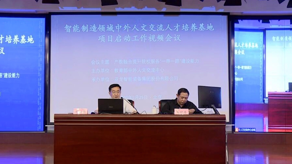 近日,教育部“智能制造領域中外人文交流人才培養基地項目”啟動工作視頻會議暨“產教融合提升院校服務‘一帶一路’建設能力”主題會議在北京舉行。本次項目啟動工作會以線上視頻形式進行,我校作為智能制造領域中外人文交流人才培養項目2020年第二批籌建院校在線參加了會議。會上,教育部中外人文交流中心主任杜柯偉為項目入選院校在線“云授牌”并頒發籌建證書。