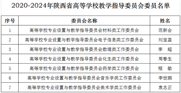 近日,陜西省教育廳公布了2020-2024年陜西省高等學校教學指導委員會委員名單,我校7名教師成功入選。