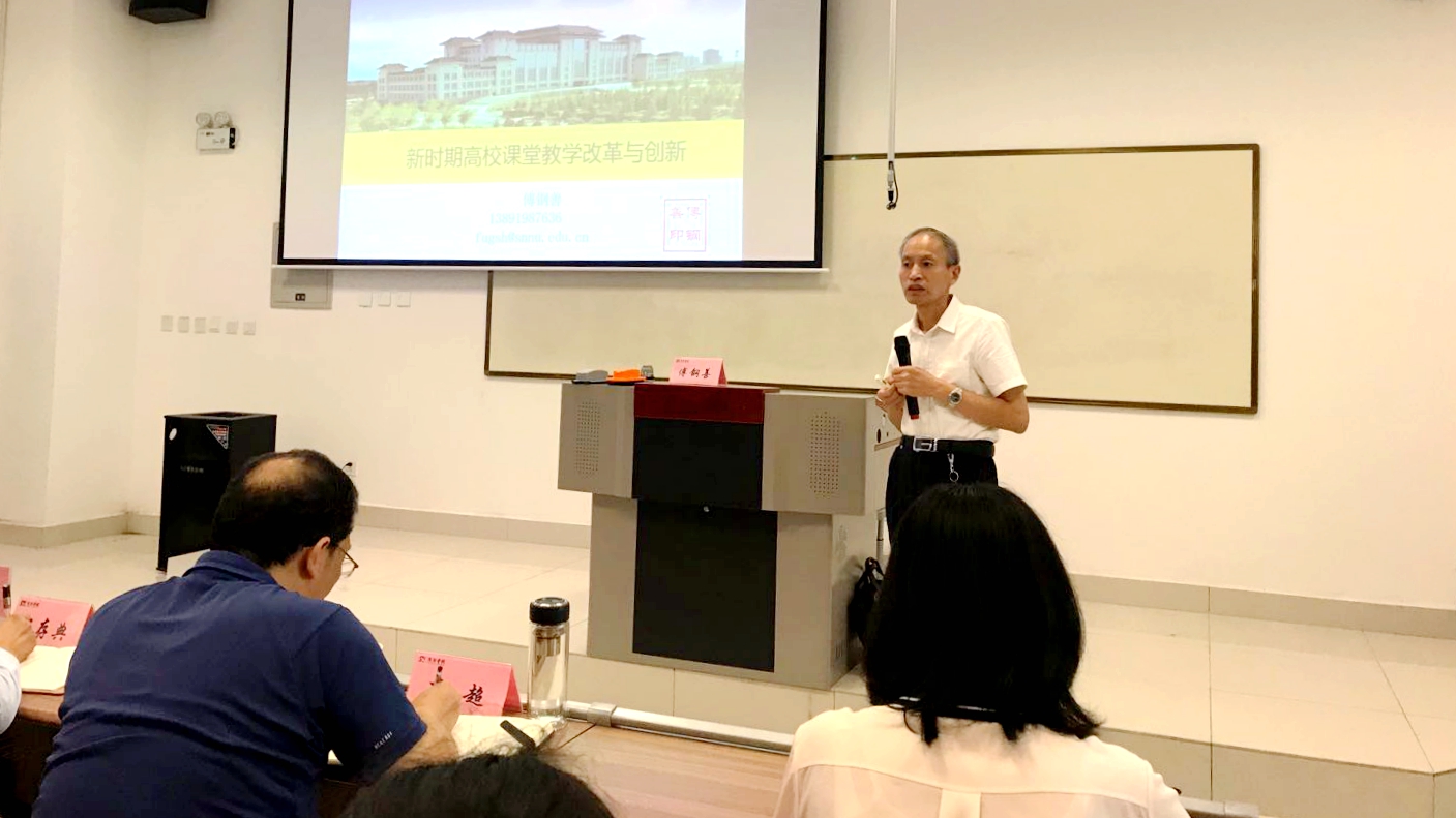 傅教授以《新時期高校課堂教學改革與創新》為題,為我校經管學院、數計學院、建工學院、馬克思主義學院部分教師及參加課堂創新大賽的教師作了一場精彩的專題報告。他圍繞“以賽促教、以賽促創、以賽促新,不斷提升高校人才培養質量”主線,從厘清教學與科研的關系、如何由“水課”到“金課”、知識傳授與課堂育人功能銜接等方面引導廣大教師重新認識自己的本職工作,真正做到“以生為本”,推進“四個回歸”。他還圍繞新時期人才培養新要求,提出高校課堂教學要“理念創新、內容創新、模式創新、方法創新、形態創新、過程創新、評價創新、服務創新”,并就教學設計創新進行了重點闡述。報告內容既富有理論深度,又兼具現實針對性和可操作性,為我校進一步推動課堂改革、實現信息技術與教育教學的深度融合、提高教師信息化教學能力提供了積極借鑒。