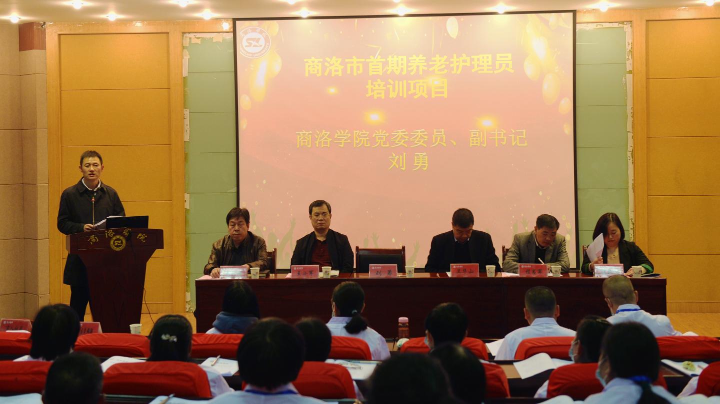 10月17日上午,商洛市首期養老護理員培訓在我校開班授課。校黨委副書記劉勇、商洛市人力資源和社會保障局副局長衛華山、商洛市民政局副局長王小軍出席開班典禮。商洛高新區黨群部副部長程書軍,我校繼續教育學院院長樊景博,健康管理學院副院長、項目首席專家張曉文參加開班典禮。典禮由樊景博主持。