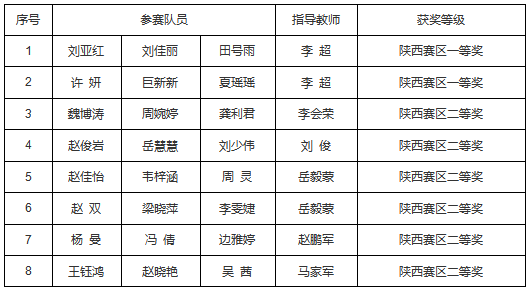 2020年全國(guó)大學(xué)生數(shù)學(xué)建模競(jìng)賽結(jié)果揭曉。我校參賽隊(duì)共獲得陜西省賽區(qū)一等獎(jiǎng)2項(xiàng)、二等獎(jiǎng)6項(xiàng),系我校歷年來(lái)獲獎(jiǎng)等級(jí)最高、獎(jiǎng)項(xiàng)最多的一次,實(shí)現(xiàn)了新的突破。
