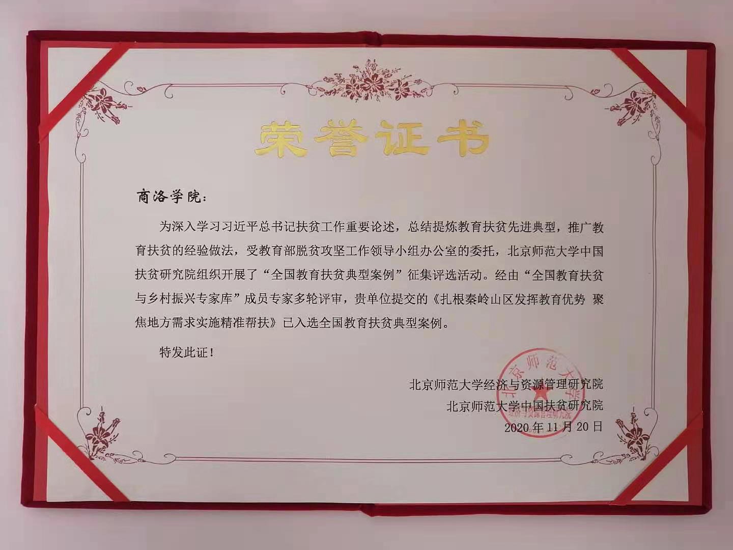 受教育部脫貧攻堅領導小組辦公室委托,北京師范大學中國教育扶貧研究院于2020年組織開展了“全國教育扶貧典型案例”征集評選活動。此次評選活動共有全國千余所高校、中小學及地方教育行政部門參加,最終選出全國教育扶貧典型案例235項。我校“雙百工程”辦公室提交的《扎根秦嶺山區發揮教育優勢 聚焦地方需求實施精準幫扶》入選全國教育扶貧典型案例,并于近期正式獲頒證書。我校也因此成為陜西省獲此殊榮的2所地方本科院校之一。
