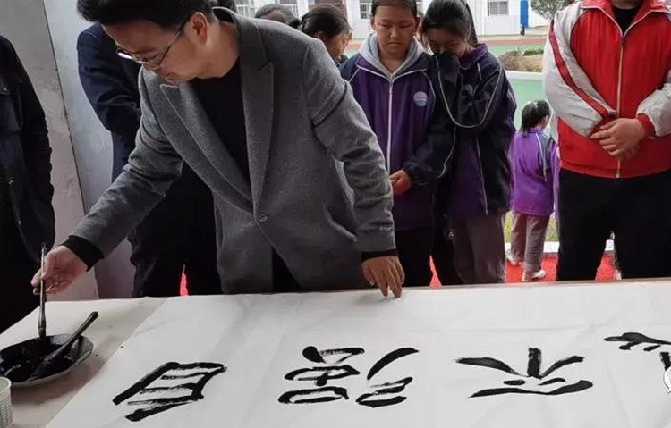 ——書法美術展示,實踐以美育人。藝術學院教師余昭為洛南縣古城鎮(zhèn)中心小學、三要中學學生舉辦了書法講座和美術作品展,他從筆畫、字型、結構、神韻等方面講解了毛筆書法的基礎知識,現(xiàn)場示范毛筆書法的用筆技巧并捐贈了自己的書法作品。此外,他還展示并講解了我校學生優(yōu)秀素描作品30余幅。活動引導青少年在藝術作品中發(fā)現(xiàn)美,感受美,增強了他們對毛筆書法、傳統(tǒng)文化、以及美術作品的藝術感知,培養(yǎng)了他們對藝術作品鑒賞能力和審美素養(yǎng),生動踐行了“以美育人,以文化人”。