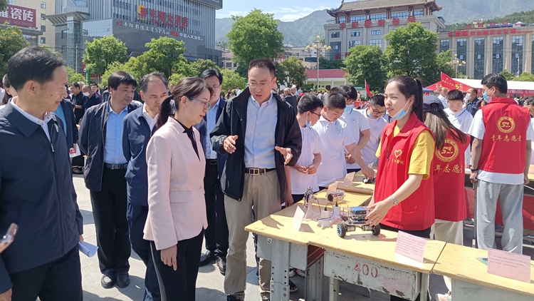 5月24日,由商洛市委宣傳部、科技局及科協(xié)聯(lián)合我校舉辦的2021年商洛市科技活動周啟動儀式在山陽縣人民廣場舉行。商洛市副市長權(quán)雅寧出席活動并講話。商洛市委宣傳部、科技局及科協(xié),山陽縣委、縣政府及我校科技處負(fù)責(zé)人,省市科技特派員代表、我校“流動科技館”成員及山陽縣學(xué)生代表、社會各界群眾1000余人參加了啟動儀式。