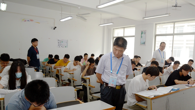 為加強期末考試的組織管理和考風建設,7月6日,校長范新會、黨委副書記劉勇,副校長劉寶盈、郭瑾在教務處相關負責人的陪同下,深入各考場檢查考試工作。