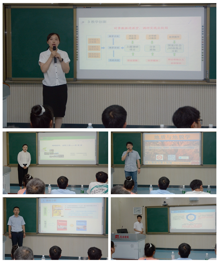 現場展示采取參賽教師5分鐘說課和15分鐘講課的方式進行。5名參賽教師精心備賽、準備充分,以PPT課件、板書等傳統教學方式為基礎,深入挖掘各自課程蘊含的思政教育元素和所承載的思政教育功能,充分展示了各自的“課程思政”理論功底和教學風采。