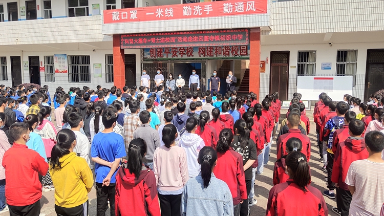 5月24日,2022年商洛市文化科技衛生“三下鄉”集中示范暨第30屆“科技之春”宣傳月活動啟動儀式在鎮安縣云蓋寺鎮舉行,市委常委、市委宣傳部部長、市文化科技衛生“三下鄉”活動領導小組組長賈永安出席活動并講話。云蓋寺鎮中學師生、各界群眾代表參加啟動儀式。我校“流動科技館”師生為云蓋寺鎮中學等學校帶來了豐富多彩的科普活動。