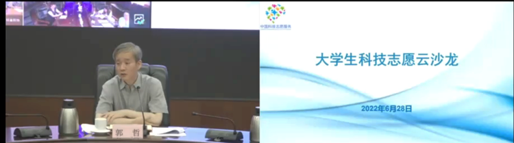 郭哲在講話中指出,科普工作不僅僅傳遞知識,更要引領報效國家的愛國情懷。各高校要將科技志愿服務融入思想政治教育體系,發揚奉獻、友愛、互助、進步的志愿服務核心價值,傳遞愛國、創新、求實、奉獻協同育人的科學家精神,引領大學生走進社區、走進學校、走進企業,服務好老年群體、產業工人、農戶、青少年等不同群體,通過常態化科技志愿服務,使廣大青年大學生得到實踐與錘煉,為全社會文明進步作出扎實的貢獻。
