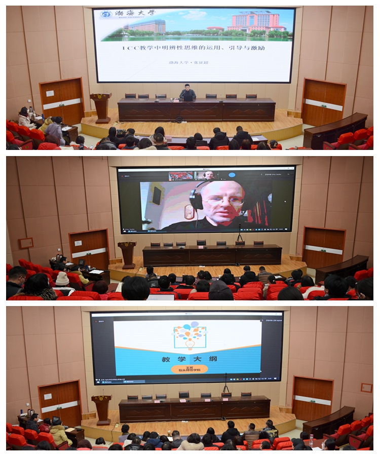 培訓(xùn)期間,渤海大學(xué)張征超教授、波蘭格達斯克大學(xué)Artur Szutta教授、包頭師范學(xué)院王芳副教授分別就《明辨性思維在ICC項目教學(xué)中的應(yīng)用》《ICC課程教學(xué)評價》《明辨性思維》《教學(xué)大綱設(shè)計》等專題,圍繞ICC項目的教學(xué)理念和教學(xué)特點,為參訓(xùn)教師作了四場具有學(xué)術(shù)性、實踐性和針對性的專題報告。