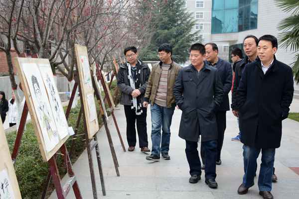 為豐富和創新學生工作的內容與形式,探索藝術生思想政治教育的有效途徑,本學期來,藝術學院黨總支組織、策劃了學生主題思想教育系列活動。12月7日,活動成果在我校1號教學樓走廊和北院中心花園展出。校黨委副書記、副校長范新會,黨委副書記彭虎軍前往參觀,對藝術學院將學生創新實踐與思想政治教育工作結合的做法給予高度評價。黨委宣傳部、學生處、發展規劃與合作交流處、藝術學院黨總支負責人陪同參觀。