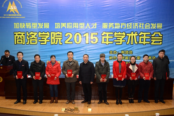 12月26日,我校2015年學術年會在圖書館報告廳隆重召開。大會以“加快轉型發展培養應用型人才 服務地方經濟社會發展”為主題。進化古生物學家、中科院院士、西北大學教授舒德干,西北大學、西安石油大學教授、博士生導師、西安石油大學副校長李華,商洛市科協主席閆彩芹,校領導劉建林、范新會、王思懷、魏書堂、彭虎軍、劉寶盈出席年會開幕式。大會舉辦了專題報告,分自然科學和人文科學兩個會場進行了學術交流,對我校2015年度省教育廳科研獲獎成果、學術年會優秀論文及組織單位進行了表彰獎勵。