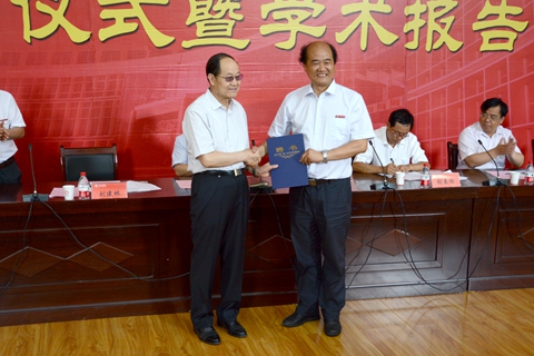 在熱烈的掌聲中,校黨委書記、校長劉建林為張生勇院士頒發了聘書。