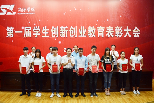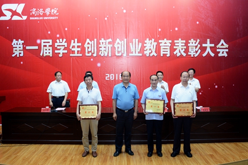 校領導劉建林、彭虎軍,教務處處長李超、學生處處長石啟英、科技處處長李繼高分別為受表彰學生及集體代表領獎。石啟英宣讀了《商洛學院關于表彰第一屆學生創新創業教育先進集體、優勝團隊及標兵、優秀指導教師、學生工作優秀創新成果的決定》。