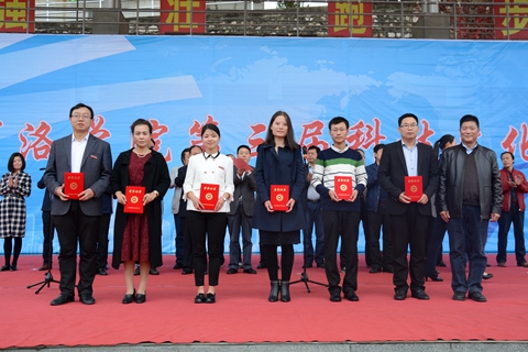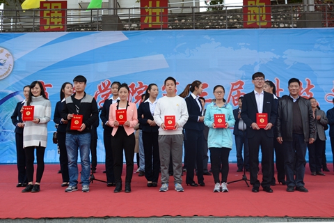 校團委書記蔣正治宣讀了學校關于表彰第七屆創新實踐大賽獲獎項目的文件。范新會為獲獎教師代表、學生代表頒獎。獲獎教師代表袁訓峰、獲獎學生代表徐劍作了表態發言。