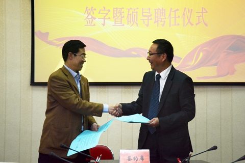 劉新民為我校受聘碩士研究生導師的朱書祥教授、黃顯忠教授頒發聘任證書。劉新民向與會人員介紹了西安體育學院的發展概況和聯合培養碩士研究生情況,希望兩校在做好聯合培養碩士研究生工作的同時,開展多層次合作。