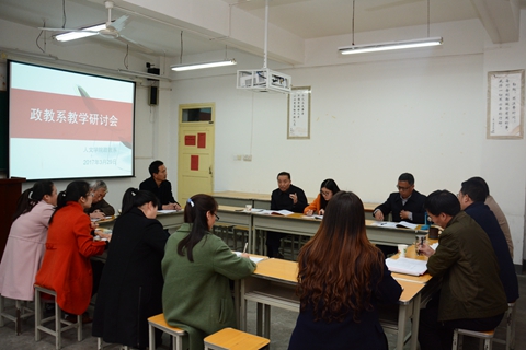 為了提高教師的教學(xué)水平,推進教學(xué)改革,提升教學(xué)效果,人文學(xué)院政教系在總結(jié)2016年主題教研活動的基礎(chǔ)上,組織開展了以“如何發(fā)揮學(xué)生的主體性”為主題的2017年教研活動。今年的教研活動自第一周開始,持續(xù)五周時間,政教系全體專兼職教師參加了教研活動。