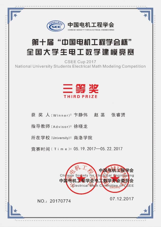 第十屆全國大學生電工數學建模競賽商洛學院獲獎名單