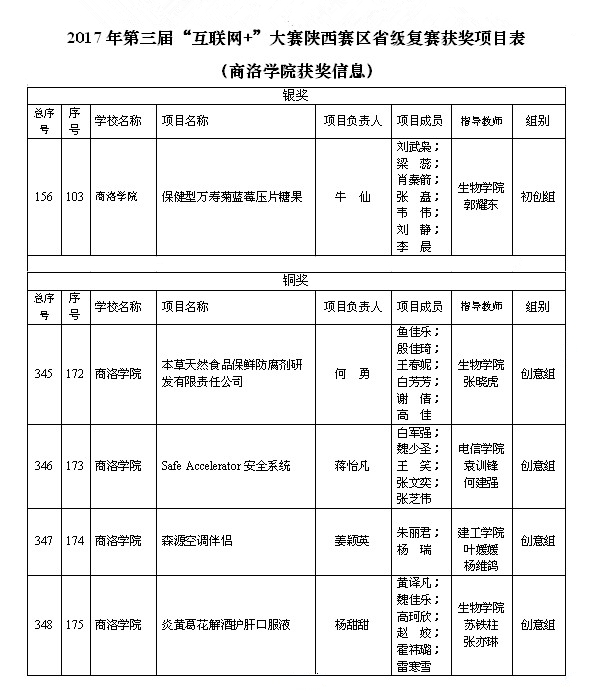 第三屆中國“互聯網+”大學生創新創業大賽由教育部與有關部委和共青團中央、陜西省人民政府共同主辦,旨在深化高等教育綜合改革,激發大學生的創造力,培養造就“大眾創業、萬眾創新”的生力軍;推動賽事成果轉化和產學研用緊密結合,促進“互聯網+”新業態形成;以創新引領創業、創業帶動就業,推動高校畢業生更高質量創業就業。大賽采用校級初賽、省級復賽、全國總決賽三級賽制。陜西賽區省級復賽自今年4月啟動以來,經過校級初賽,有650支優秀團隊進入省級復賽。經網絡初審、會議評審、路演答辯、評委會評審,最終產生金獎53項、銀獎120項、銅獎282項。