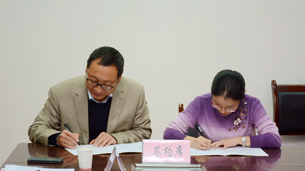 10月16日,我校與陜西科技大學(xué)舉行聯(lián)合培養(yǎng)碩士研究生簽約儀式,副校長劉寶盈和陜西科技大學(xué)研究生院副院長鮑艷分別代表雙方學(xué)校在協(xié)議書上簽字。陜西科技大學(xué)研究生院,我校教務(wù)處、化材學(xué)院、生物學(xué)院、電信學(xué)院、經(jīng)管學(xué)院相關(guān)負(fù)責(zé)人參加簽約儀式,學(xué)科辦公室副主任王學(xué)軍主持簽約儀式。