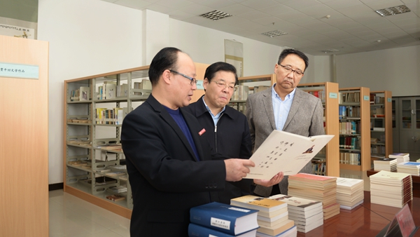 李穎科一行深入我校商洛文化暨賈平凹研究中心、商洛紅色文化資料館和學(xué)校藝術(shù)展廳等處,詳細(xì)了解了我校哲學(xué)社會(huì)科學(xué)工作開(kāi)展情況。李穎科表示,商洛學(xué)院扎根商洛歷史文化、紅色文化土壤,培育了一批區(qū)域特色鮮明的人文社科品牌,希望商洛學(xué)院繼續(xù)深入挖掘商洛區(qū)域歷史文化資源,加大哲學(xué)社會(huì)科學(xué)研究投入,多出新成果、新亮點(diǎn)。省社科聯(lián)會(huì)積極支持學(xué)校哲學(xué)社會(huì)科學(xué)工作,在平臺(tái)建設(shè)、項(xiàng)目申報(bào)上給予政策和資金支持,共同為繁榮和發(fā)展哲學(xué)社會(huì)科學(xué)做出貢獻(xiàn)。