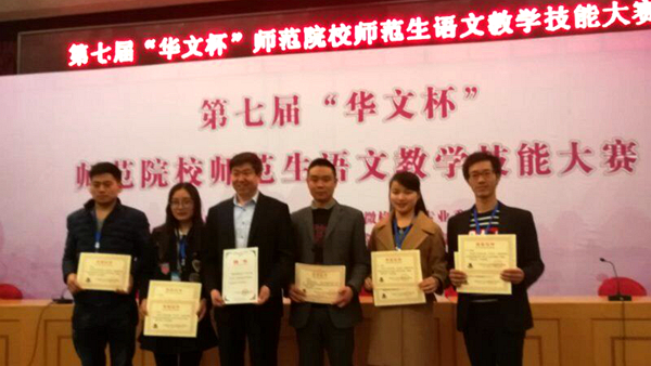 由中國教育技術協會微格教學專業委員會主辦、廣西師范大學承辦的第七屆“華文杯”全國師范院校師范生語文教學技能大賽于11月26日至29日在廣西桂林舉行,我校人文學院漢語言文學專業4名同學參賽 ,共獲得教學設計獎一等獎3項、二等獎1項,教學技能獎二等獎4項。