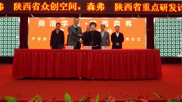 12月8日,我校與陜西森弗天然制品有限公司簽訂共建“健康養(yǎng)生產(chǎn)業(yè)產(chǎn)學(xué)研一體化示范基地”協(xié)議。陜西省委高教工委副書記李智軍,省教育廳高教處處長胡海寧,商洛市委常委、副市長王華,校黨委書記龍治剛,森弗天然制品有限公司董事長金新康出席簽約儀式,并共同為“健康養(yǎng)生產(chǎn)業(yè)產(chǎn)學(xué)研一體化示范基地”揭牌。副校長劉寶盈與森弗天然制品有限公司董事長金淑俠簽訂《健康養(yǎng)生產(chǎn)業(yè)產(chǎn)學(xué)研一體化示范基地建設(shè)協(xié)議》。簽約儀式由商洛市教育局局長胡棟梁主持。
