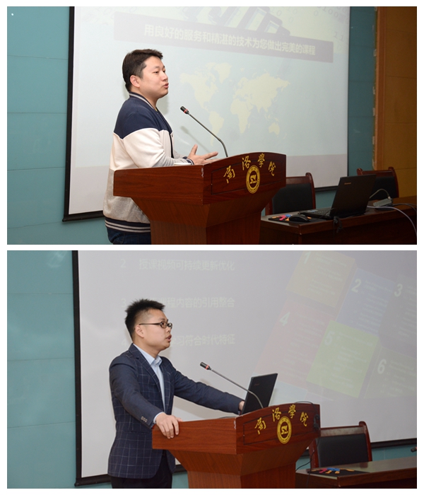 超星集團陜西課程項目總監(jiān)龐健與超星集團泛雅平臺產(chǎn)品經(jīng)理劉杰,先后以《微課課程建設(shè)》《微課時代的新一代網(wǎng)絡(luò)教學(xué)平臺--泛雅》為主題,結(jié)合微課制作的優(yōu)秀案例,分別從微課教學(xué)團隊建設(shè)、編輯團隊建設(shè)、微課制作前期中期的準備工作、微課教學(xué)理念、泛雅平臺的特征等方面進行了全面的講解,并通過“超星學(xué)習(xí)通”與參會教師互動。
