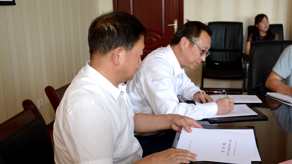 會上,劉寶盈和崔新成簽署了《商洛學院?山陽高新區管委會合作共建“商洛學院博士工作站”協議》《商洛學院?山陽高新區管委會共同推進縣域經濟發展戰略合作協議》。簽約儀式后,我?;?、生物、電信學院主要負責人分別匯報了與陜西豐源釩業科技發展有限公司、山陽奧科粉體有限公司、陜西天之潤生物科技有限公司、陜西九杰智能儀表有限公司在科研成果轉化、人才招聘、就業服務,產學研平臺建設等方面的校企合作情況,并就前期合作的《釩尾礦的高效綜合利用》《合作共建“東方美谷”》《NB物聯網水表的控制模塊的軟件設計》三個項目進一步進行深入溝通。