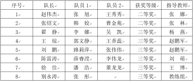 近年來,我校大學(xué)生數(shù)學(xué)建模競賽發(fā)展勢頭強(qiáng)勁,在全國大學(xué)生數(shù)學(xué)建模競賽、電工杯數(shù)學(xué)建模競賽和五一數(shù)學(xué)建模聯(lián)賽中的比賽成績逐年提高。通過這一類競賽使學(xué)生體驗(yàn)了應(yīng)用數(shù)學(xué)解決實(shí)際問題的過程,提高了學(xué)生建立數(shù)學(xué)模型和運(yùn)用計(jì)算機(jī)技術(shù)的綜合水平,培養(yǎng)了學(xué)生的創(chuàng)新意識、實(shí)踐能力和團(tuán)隊(duì)協(xié)作精神。