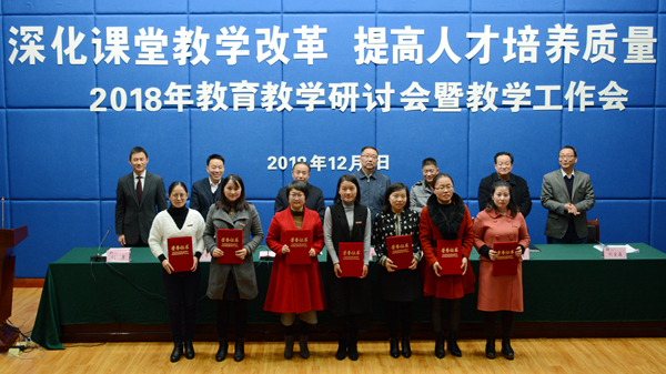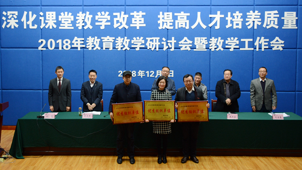 大會對我校2018年度優秀教案及優秀電子課件、實習優秀指導教師、2018屆校級優秀畢業論文指導教師、第四屆“互聯網+”大學生創新創業大賽校賽獲獎教師、2018年度青年教師教學技能競賽獲獎教師、首屆課堂教學創新大賽獲獎教師、2018年教育教學研討會優秀論文及優秀組織單位進行了表彰,劉寶盈宣讀了表彰決定。