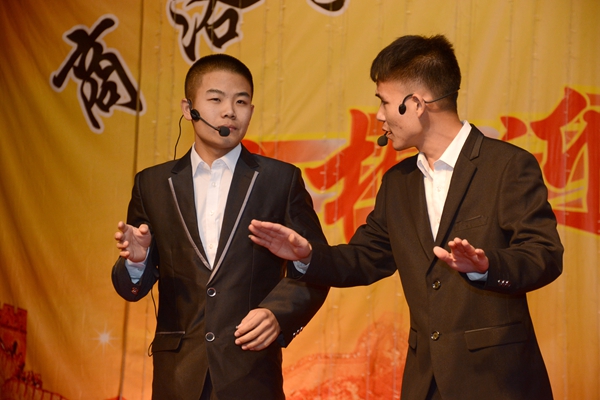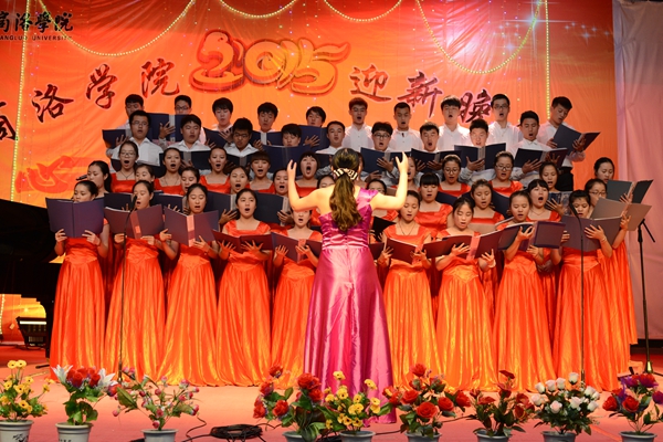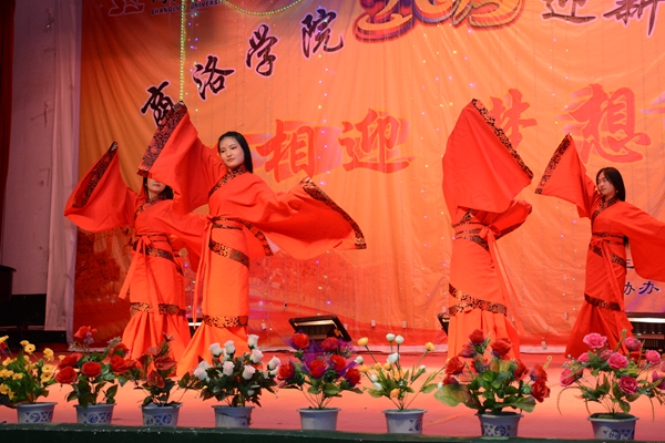 晚會(huì)以“心相迎 夢(mèng)想飛”為主題。在大合唱《游擊隊(duì)隊(duì)歌》和校歌《正道直行做棟梁》的動(dòng)人旋律唱中拉開帷幕。整場(chǎng)晚會(huì)形式多樣,現(xiàn)代與古典同臺(tái),聲樂與器樂相和,浪漫與詼諧相伴。歌舞、相聲、朗誦、魔術(shù)、樂器聯(lián)奏等精彩的節(jié)目為觀眾呈現(xiàn)了豐盛的視聽盛宴。為紀(jì)念中國(guó)人民抗戰(zhàn)暨世界反法西斯戰(zhàn)爭(zhēng)勝利70周年,由藝術(shù)學(xué)院劉威老師帶來(lái)的《紅歌聯(lián)唱》將整場(chǎng)晚會(huì)渲染出了紅色的氣息,激昂的歌聲與清靈的鋼琴悠揚(yáng)的笛聲相宜相合贏得了一陣陣贊美與掌聲。城鄉(xiāng)規(guī)劃與建筑工程學(xué)院學(xué)生帶來(lái)的相聲《地理圖》用毫不遜色于銀幕相聲的精彩表演給整個(gè)會(huì)場(chǎng)帶來(lái)了不息笑聲與不絕的掌聲。由商洛劇團(tuán)的演員帶來(lái)的商洛花鼓戲《夫妻觀燈》表現(xiàn)了商洛本地戲曲的魅力,也預(yù)示了我校戲曲學(xué)院的蓬勃發(fā)展。最終,在一首《共筑中國(guó)夢(mèng)》的師生歌伴舞中,整場(chǎng)晚會(huì)步入高潮,在陣陣掌聲中落下帷幕。
