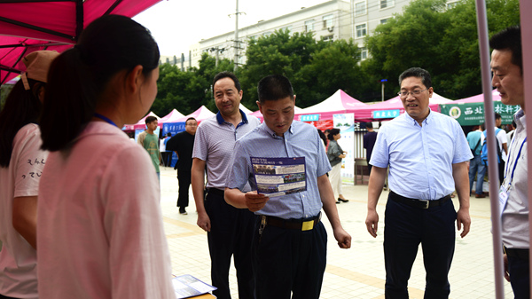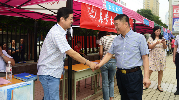 6月26日,我校舉辦了2019年校園開放日暨陜西高校招生咨詢會。我校與浙江大學(xué)、西安交通大學(xué)、西北工業(yè)大學(xué)、西北農(nóng)林科技大學(xué)、西北大學(xué)、長安大學(xué)、西安郵電大學(xué)、西交利物浦大學(xué)等30余所省內(nèi)外高校現(xiàn)場為廣大高考考生及家長提供招考咨詢服務(wù)。校長范新會到現(xiàn)場看望慰問各校工作人員并與考生及家長進行了親切交談。