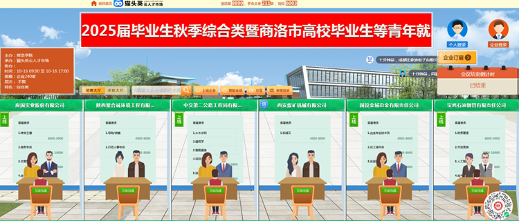 10月16日,由省教育廳指導、省就業留學中心支持,我校和商洛市人社局聯合主辦,我校就業中心和商洛市人才中心承辦的2025屆畢業生秋季綜合類暨商洛市高校畢業生等青年就業服務攻堅行動專場網絡視頻招聘會依托貓頭英云人才市場順利舉辦。