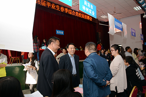 為進一步做好2016屆畢業生就業創業工作,有效搭建畢業生與用人單位雙向選擇平臺,4月24日,我校舉辦2016屆畢業生春季綜合類校園招聘會。校黨委副書記彭虎軍、商洛市人才市場管理委員會主任舒建宏等來到招聘會現場,了解招聘單位人才需求和畢業生應聘情況,宣講國家就業創業政策。我校各職能部門負責人,各二級學院黨總支書記及畢業班輔導員全程參會,現場指導學生,服務招聘單位。