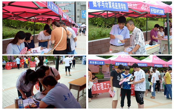 6月25日,我校舉辦2018年“校園開放日暨高考招生咨詢會”。我校與浙江大學、西安交通大學、西北工業大學、西北農林科技大學、西安電子科技大學、陜西師范大學等30余所省內外高校現場為廣大高考考生及家長提供了全方位的招考咨詢服務。活動吸引了大批學生及家長前來咨詢。副校長劉勇檢查指導現場工作,黨委委員、教務處處長李超,黨委委員、建工學院院長楊存典也來到活動現場進行咨詢解答。