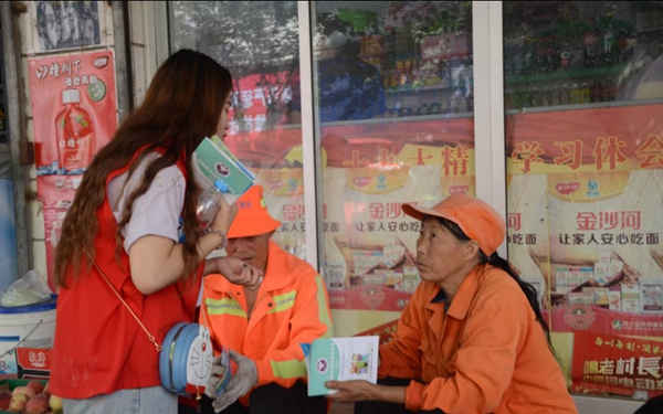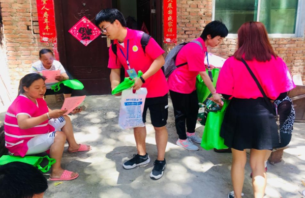 實踐團成員給當地居民分發環保購物袋