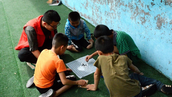 助力團成員課后和孩子們下五子棋