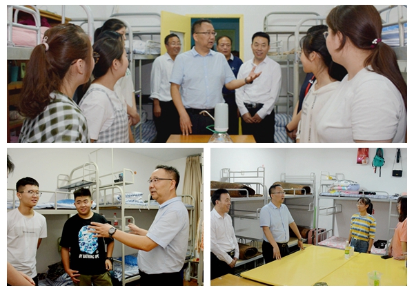 9月3日晚,校黨委書記龍治剛、黨委副書記彭虎軍和工作人員一起深入學生宿舍,看望慰問我校2019級新生,給他們送去關懷與問候。
