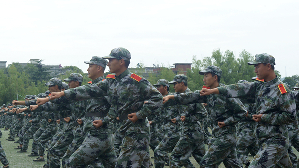 分列式結(jié)束后,學(xué)生依次進(jìn)行了匕首操、五步拳匯報表演。女兵們表演的匕首操動作鏗鏘有力、一氣呵成,盡顯“鏗鏘玫瑰”風(fēng)姿。全體參訓(xùn)學(xué)生共同完成的五步拳表演,出拳虎虎生風(fēng)、剛勁有力,每一個動作都干凈利落,揮舞間游刃有余,博得大家的陣陣喝彩。